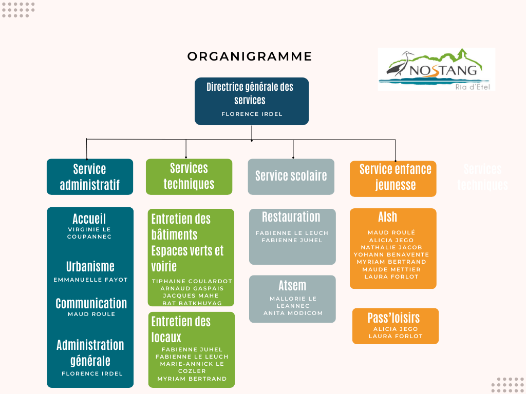 Organigramme et fonction des services municipaux de la commune.